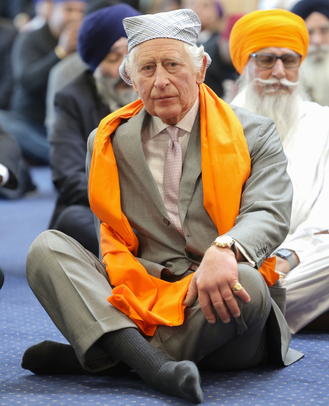 - LUTON, ENGLAND – DECEMBER 06: King Charles III sits on the floor in the Prayer Hall during a visit to the newly built Guru Nanak Gurdwara on December 06, 2022 in Luton, England.,Image: 742743130, License: Rights-managed, Restrictions: , Model Release: no, Credit line: Chris Jackson / Avalon